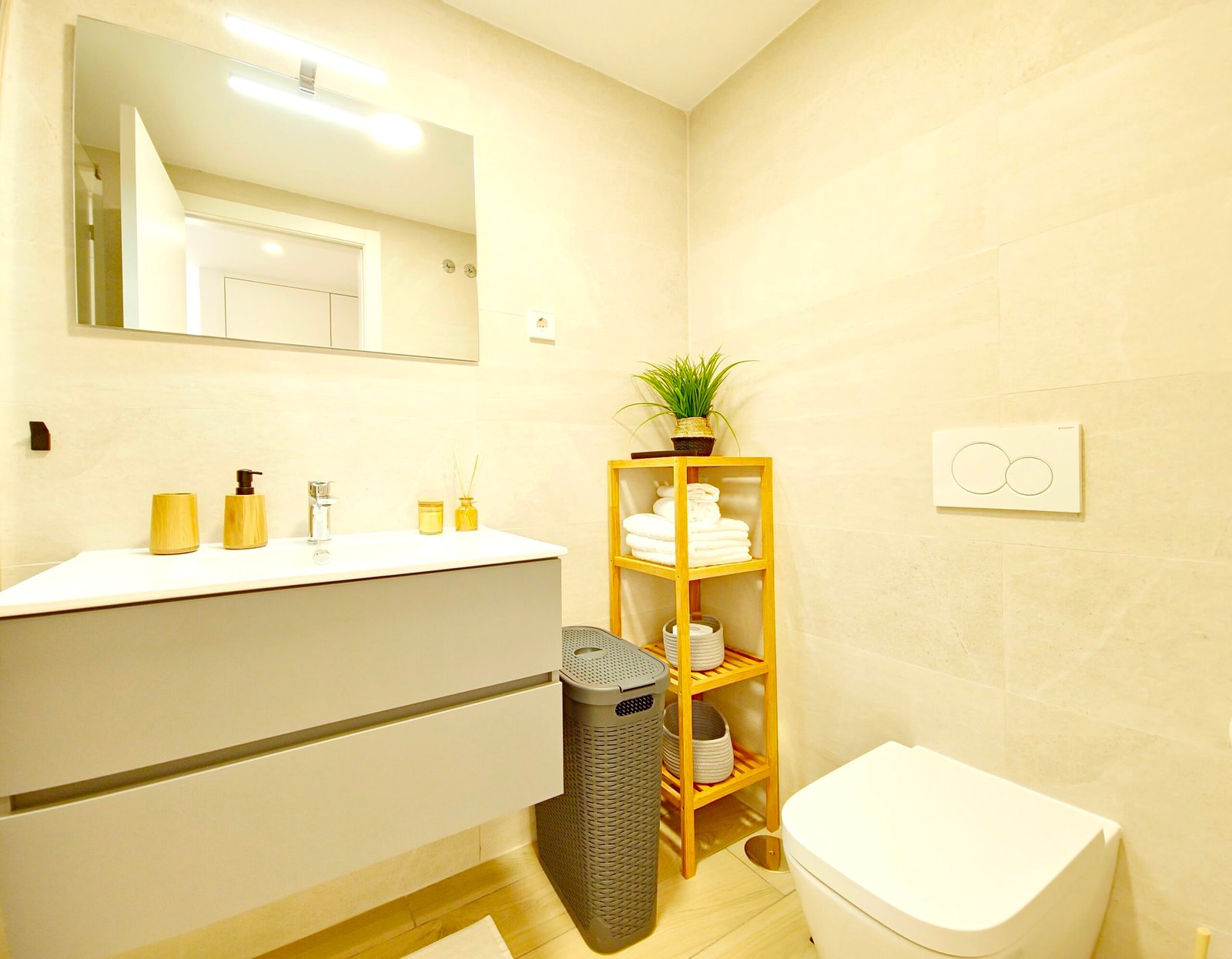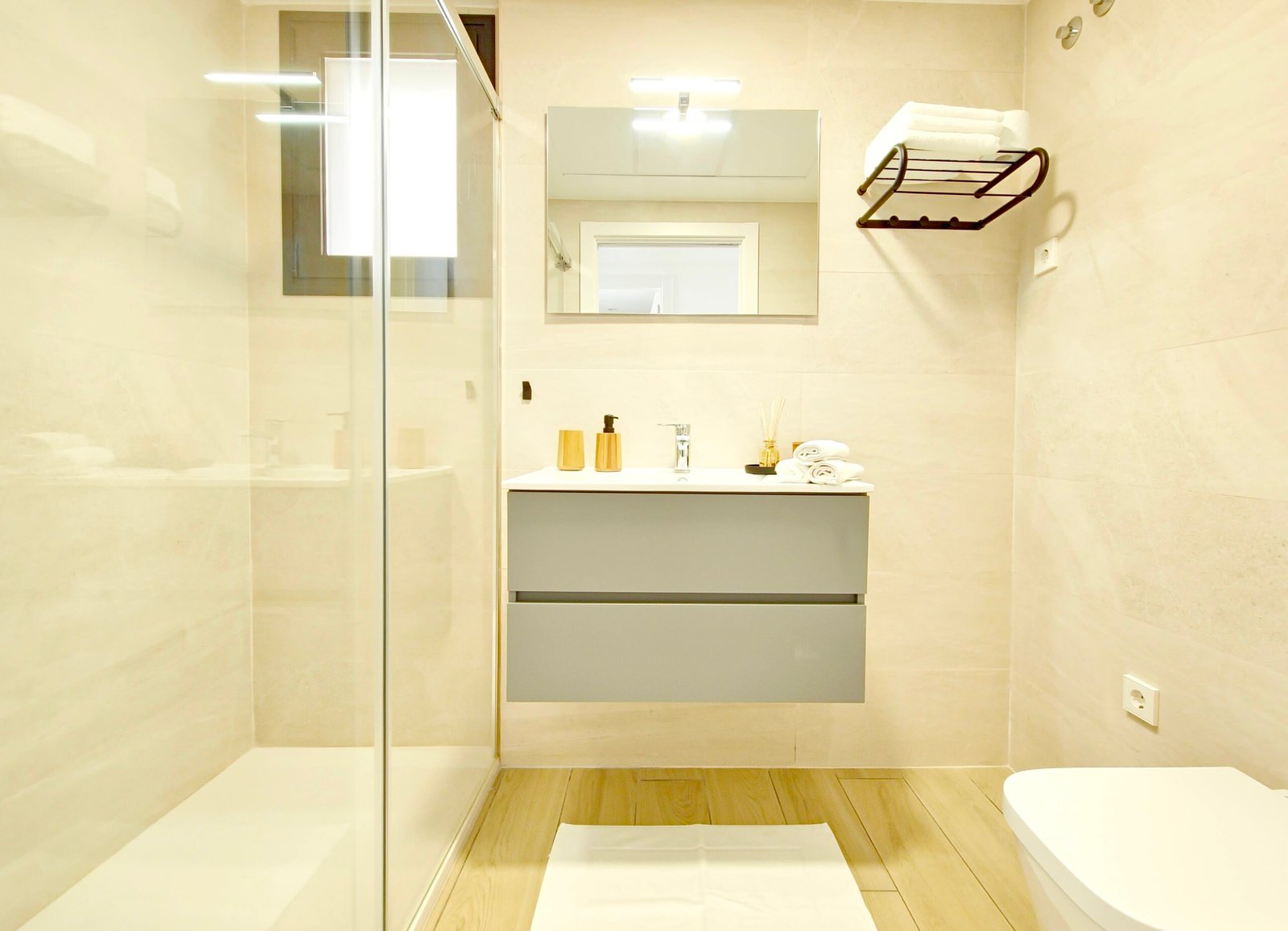 Kaksi kylpyhuonetta: Moderni tyyli, kävelysuihkut.