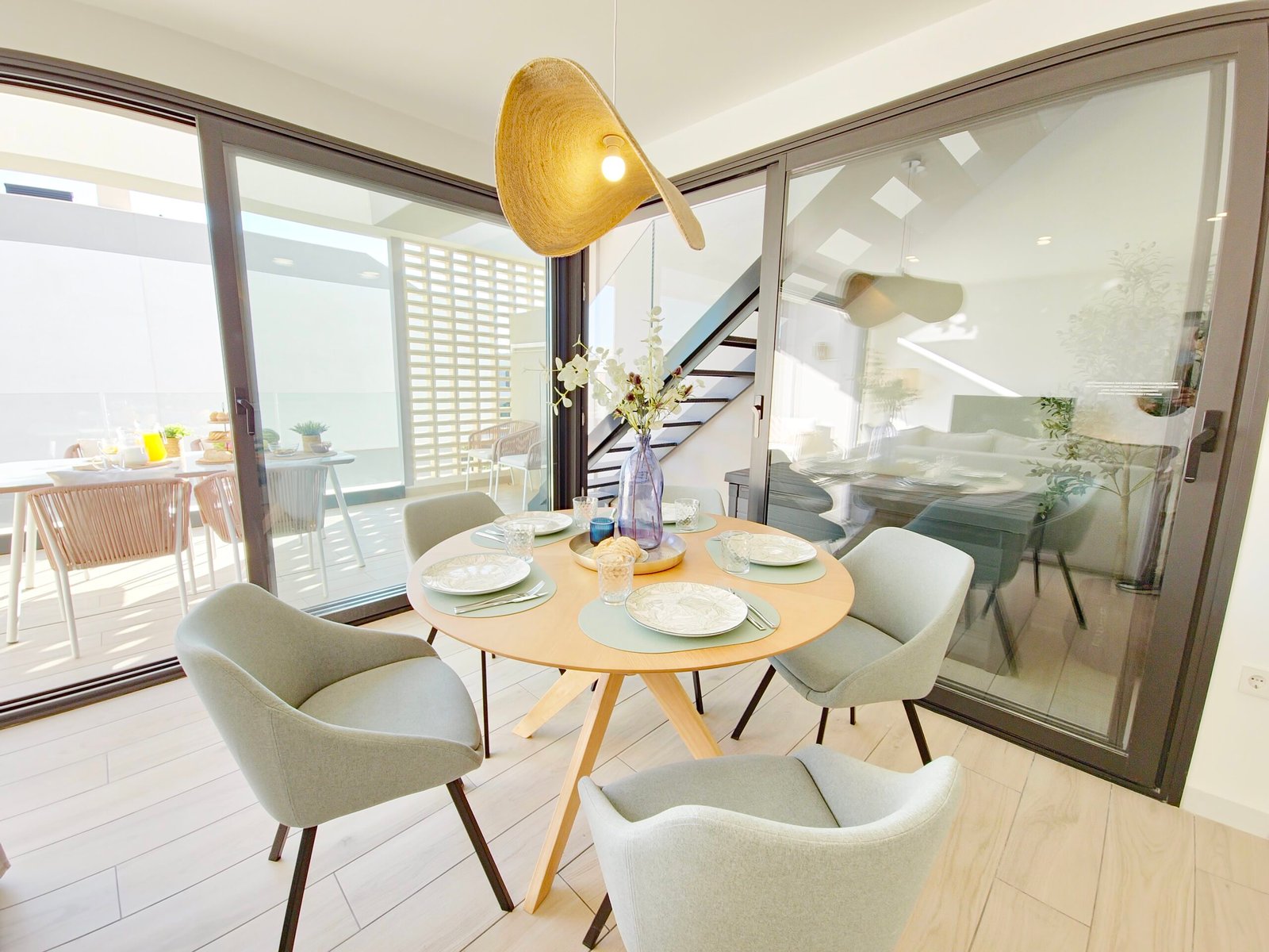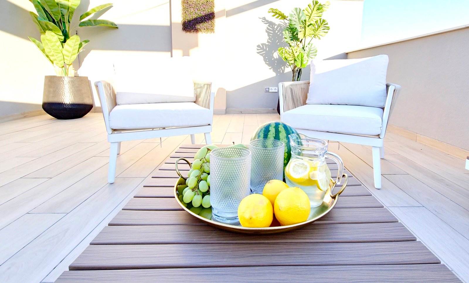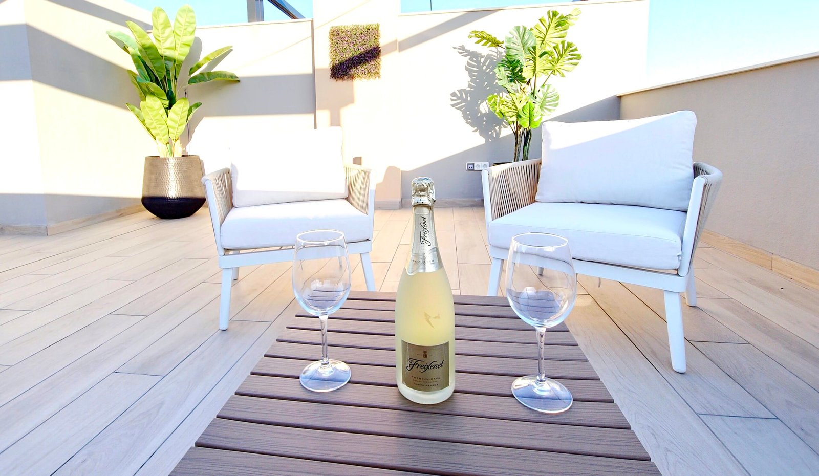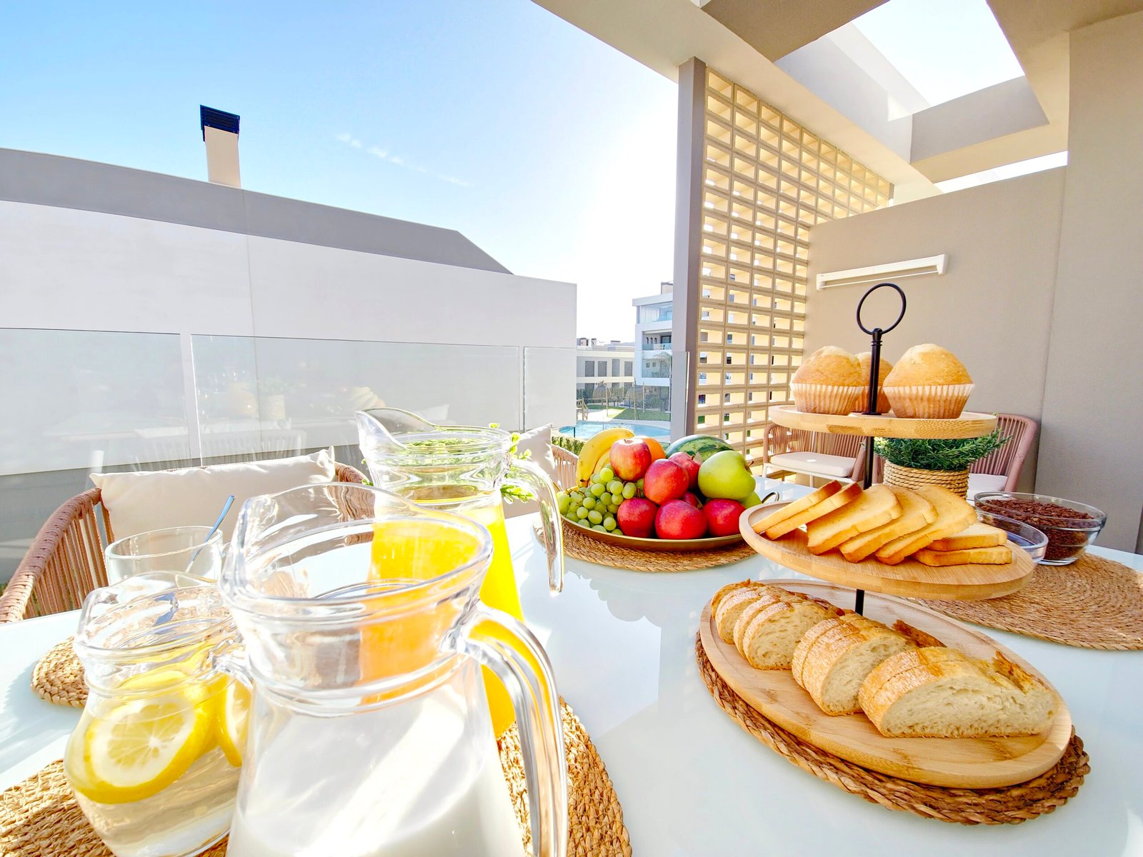 Huoneistoon kuuluu oma parveke sekä laaja yksityinen kattoterassi (solarium), josta avautuvat kauniit näkymät viheralueille ja resortin uima-altaalle – täydellinen paikka auringosta nauttimiseen ja rentoutumiseen.