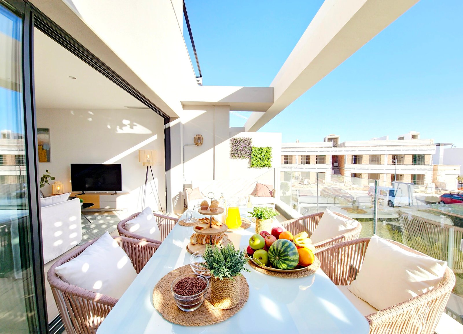 Tämä upea kahden makuuhuoneen kattohuoneisto sijaitsee halutulla Madreselva-alueella, eksklusiivisessa Santa Rosalia Lake & Life Resortissa. Asunnolla on suora hissiyhteys maanalaisesta pysäköintihallista, mikä lisää mukavuutta ja esteettömyyttä.